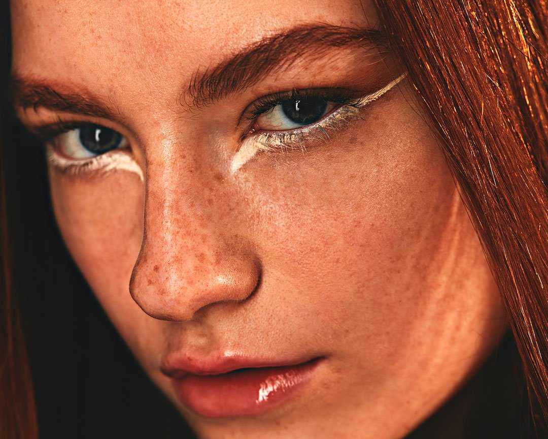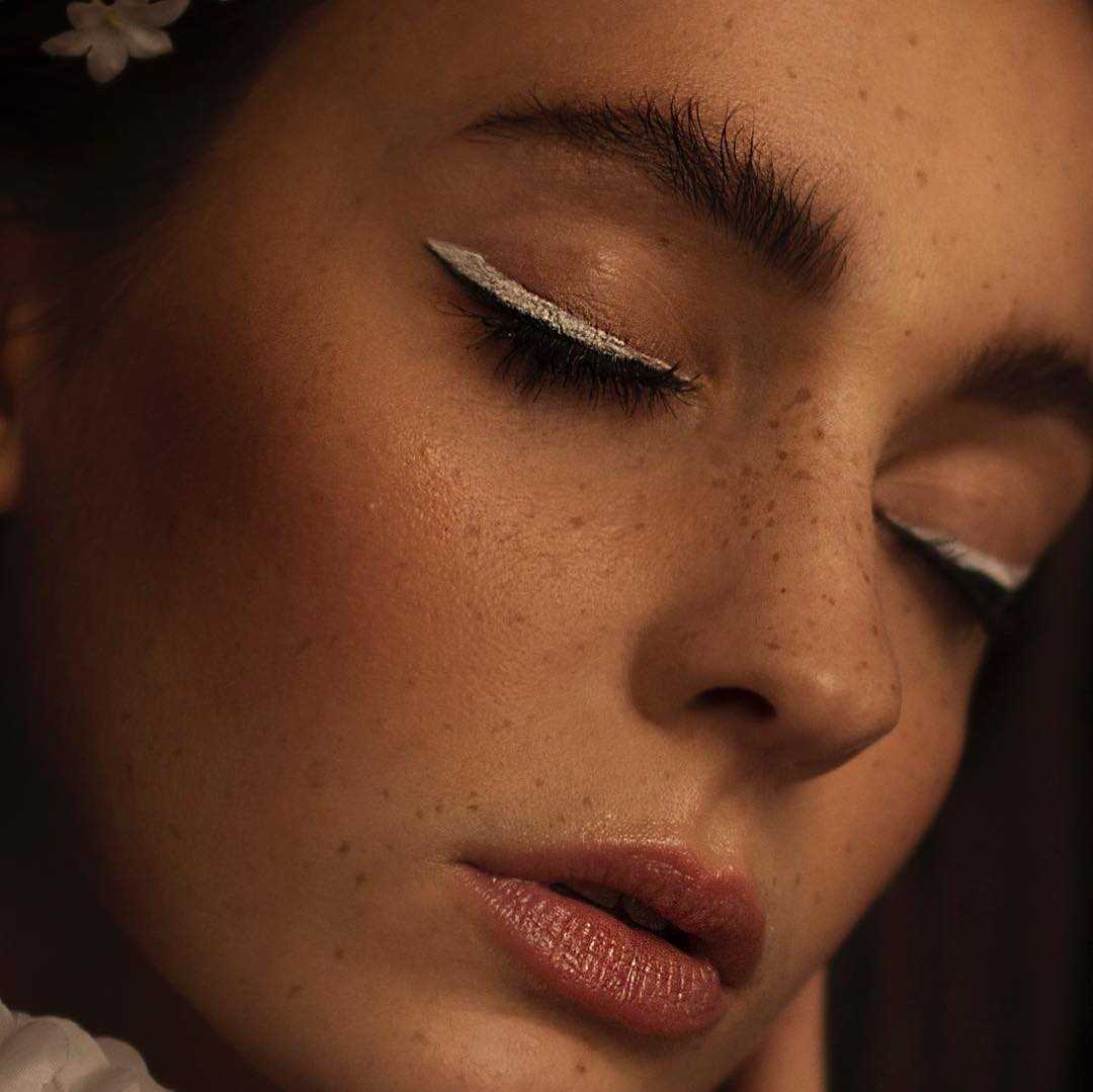 Белый цвет, нанесенный на внутренние уголки глаз, придает сияние взгляду, а также меняет форму глаз, подчеркивая их миндалевидность.