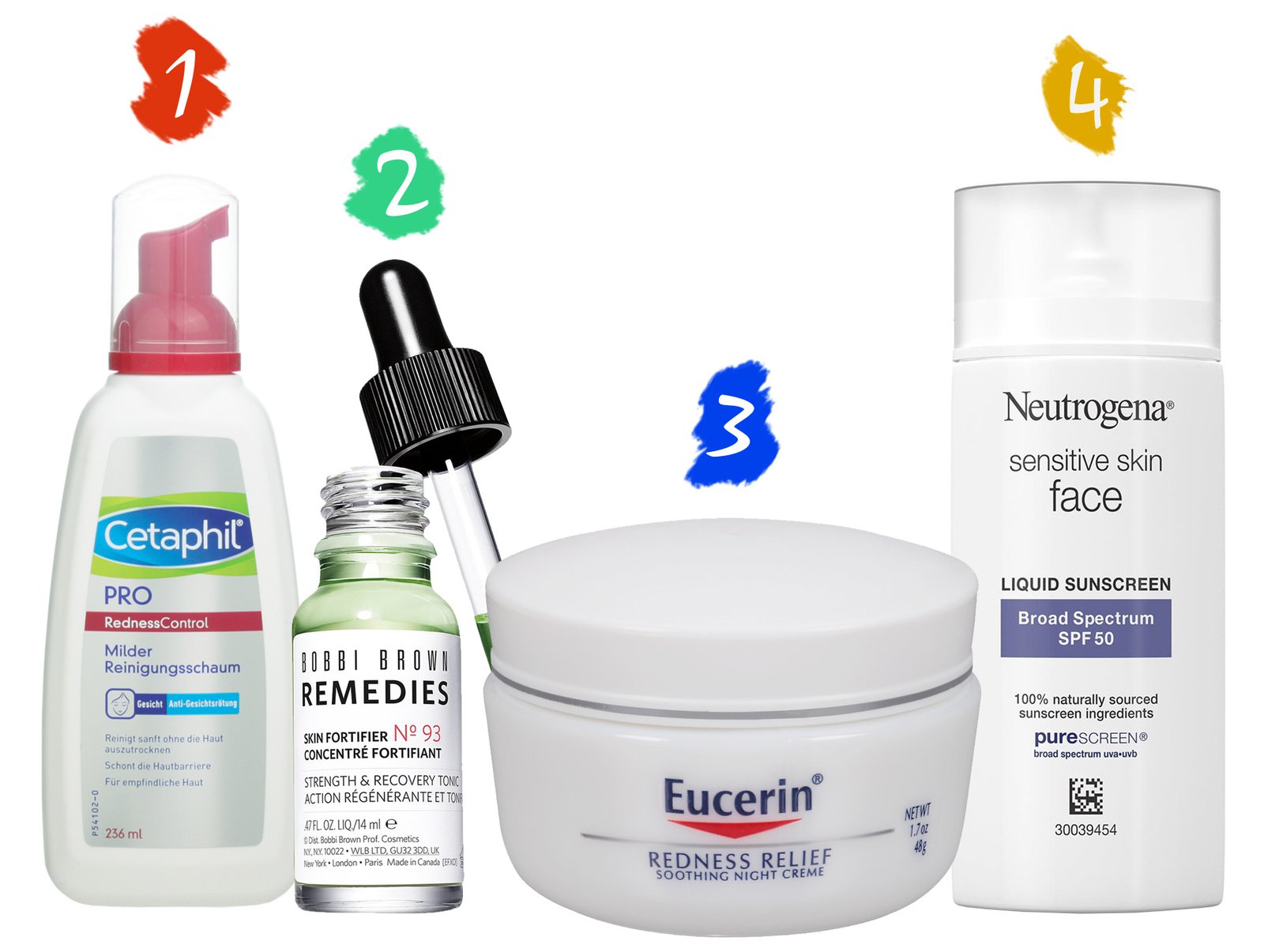 Умеренно чувствительная кожа также может обойтись минимальным набором средств. В случае, если вы страдаете от купероза или розацеа, не пытайтесь решить проблему самолечением — обратитесь за помощью к дерматологу, но если справиться с чувствительным типом кожи удается самостоятельно, то сосредоточьтесь на базовых банках, которые помогут укрепить кожу и снять покраснения.