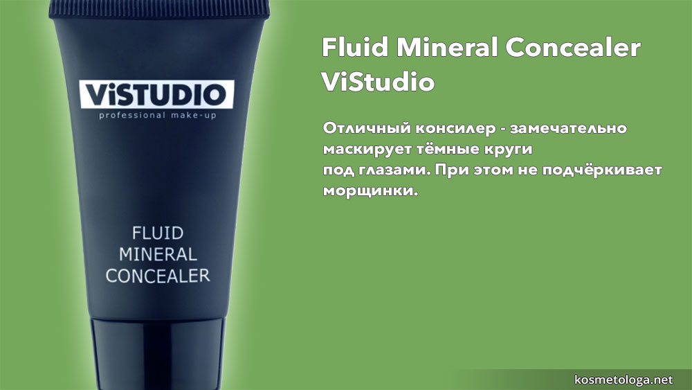 Для маскировки темных кругов под глазами я купила на выставке минеральный консилер флюид для чувствительной кожи от Vistudio – это марка итальянской профессиональной косметики.