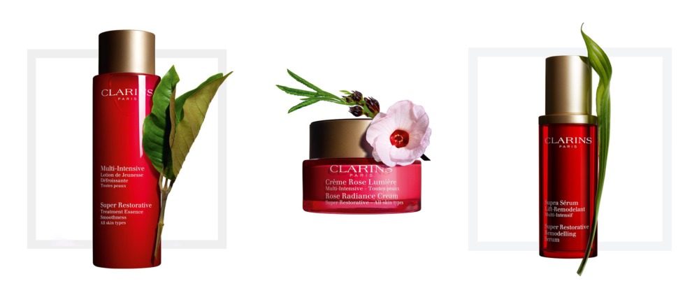 Ассортимент средств по уходу за кожей Clarins включает в себя множество благоприятных для кожи продуктов, таких как отшелушивающие средства, средства против сухости и покраснений.