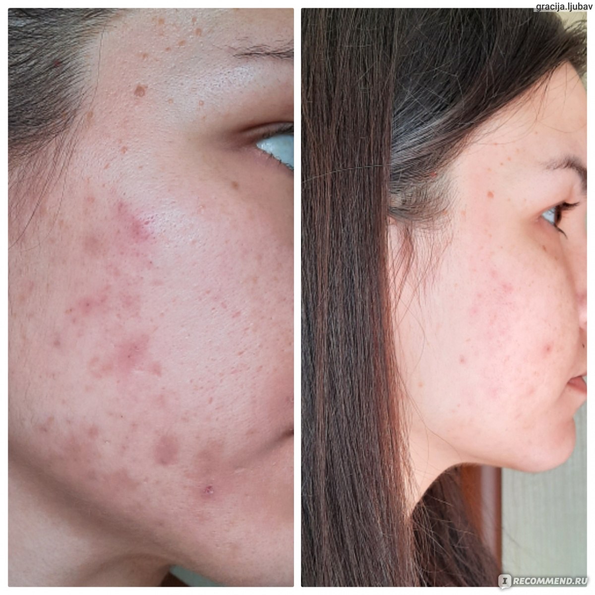 Впитывается гель очень быстро, на коже пленки не оставляет. Я наносила только на ночь, поэтому рассказать о реакции с декоративной косметикой не могу. Утром на коже ничего необычного – ровный цвет, пленки нет, высыпания и воспаления не становятся более выраженными, разве что подсушиваются чуть.
