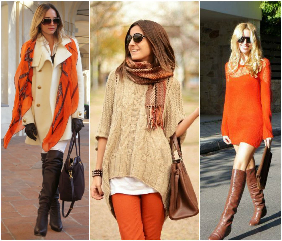 Девушкам с цветотипом осень следует выбирать оттенки соответствующие природным тонам. Идеальным решением станут насыщенные сочные цвета: апельсиновый, оранжевый, горчичный, изумрудный, солнечный, персиковый, вишневый, бежевый. Чтобы избавить образ от болезненного вида добавьте к образу детали василькового, алого, сиреневого цвета.
