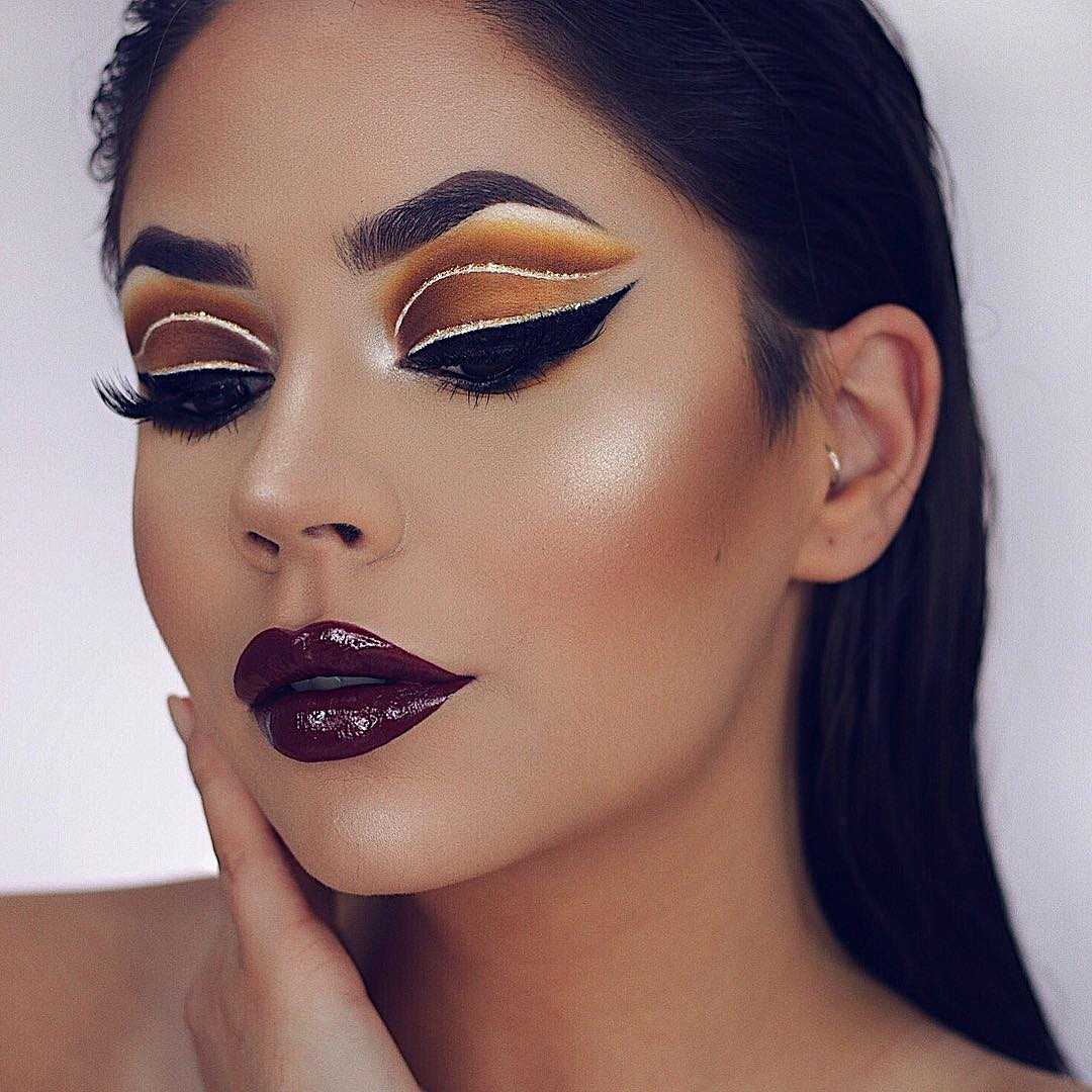 Украсить образ для вечерних выходов в свет можно, использовав желтые, пурпурные тени или цвета баклажана.