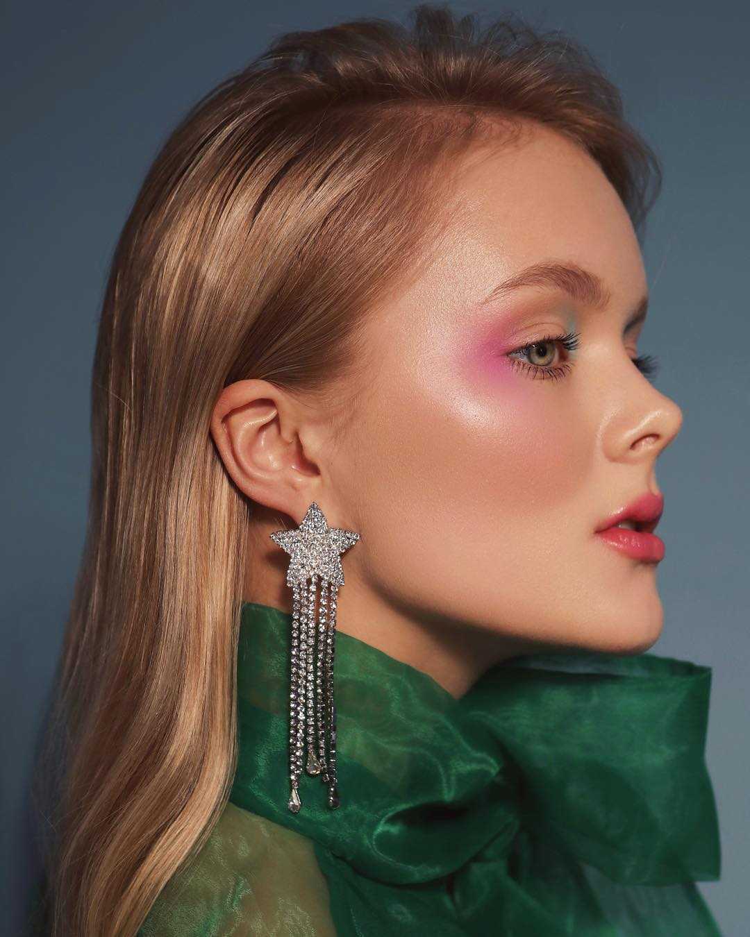 Обладательницам зеленых глаз стоит обратить внимание на фиолетовый оттенок теней. Эти два цвета находятся на противоположных сторонах цветового круга, поэтому контрастные фиалковые тени – лучший способ подчеркнуть изумрудный оттенок глаз.