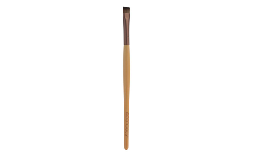 Завершает наш обзор продукт Ecotools Flat Eyeliner Brush. Он создан для макияжа глаз, поэтому имеет короткий ворс и удлиненную ручку. Край срезан ровно, сама щетина плоская, имеет деревянную стандартную ручку. Стоит отметить, что искусственный ворс этой кисти нельзя назвать мягким, но он не царапает веко, не приносит дискомфорта. От загрязнений очищается быстро и вполне легко.