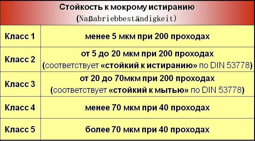 Рис. 1. Классы стойкости к мокрому истиранию |