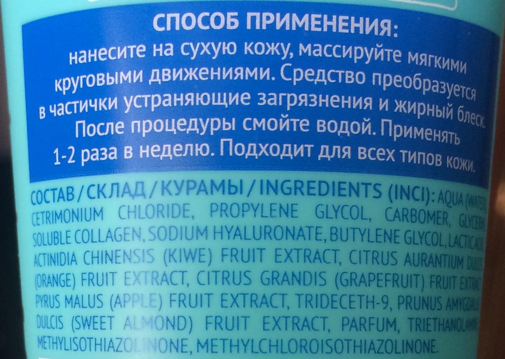 Средство изготовлено на водной основе, за счет чего хорошо смывается, не оставляя на лице липкой пленки или жирного блеска. Продается скраб в мягких ламинатных тубах по 100 мл с откидывающейся крышкой.