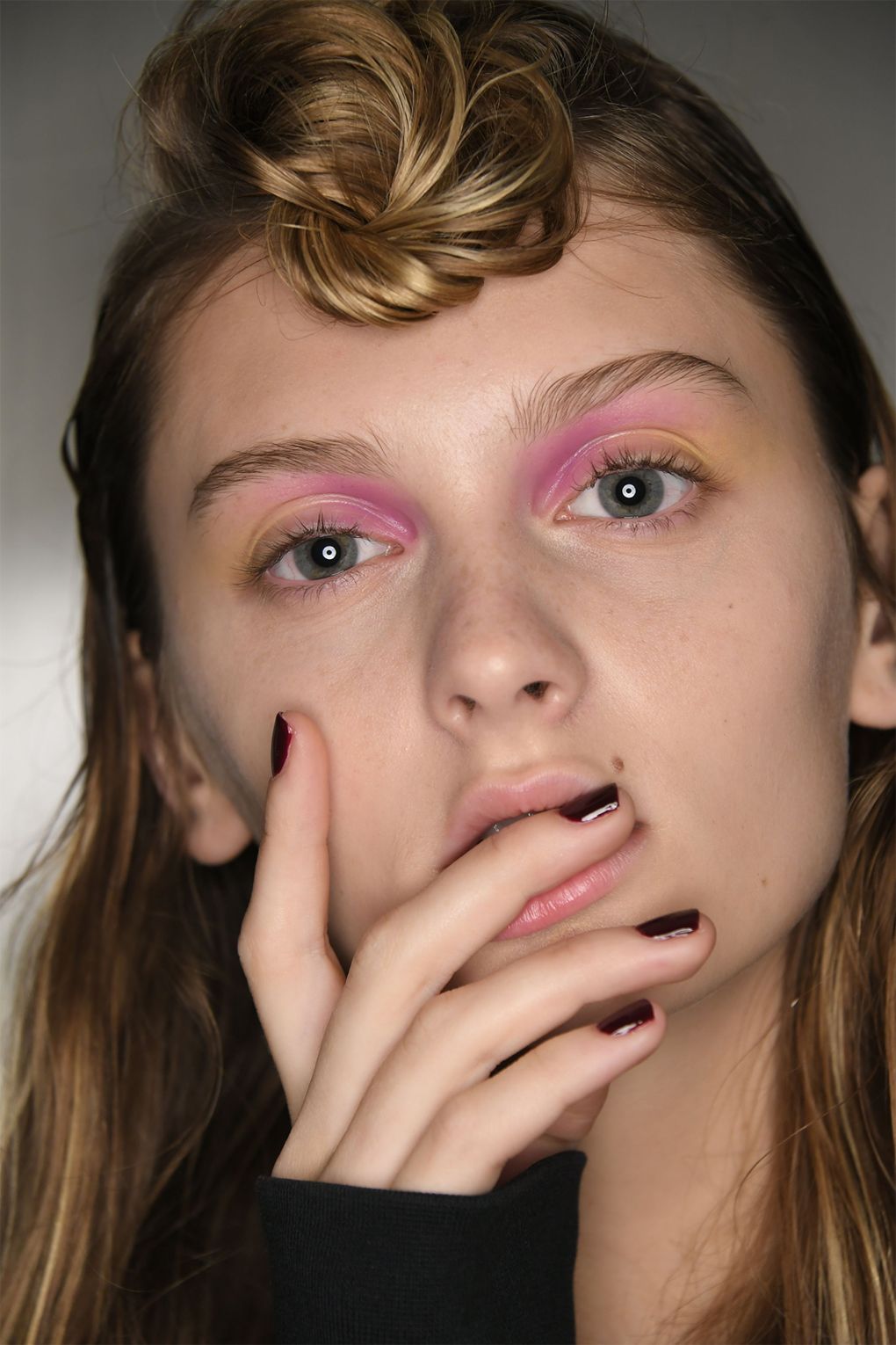 Визажисты не церемонились и выбирали максимально яркие оттенки – голубой, желтый, фиолетовый, салатовый. Понимаем, что не всегда такой мейкап уместен, но тут смотря как преподнести. Например, в коллекции David Koma яркие голубые тени были нанесены тонкой полоской. Никаких стрелок, ярких помад и румян. Образ получился очень нежным и совсем не вызывающим.