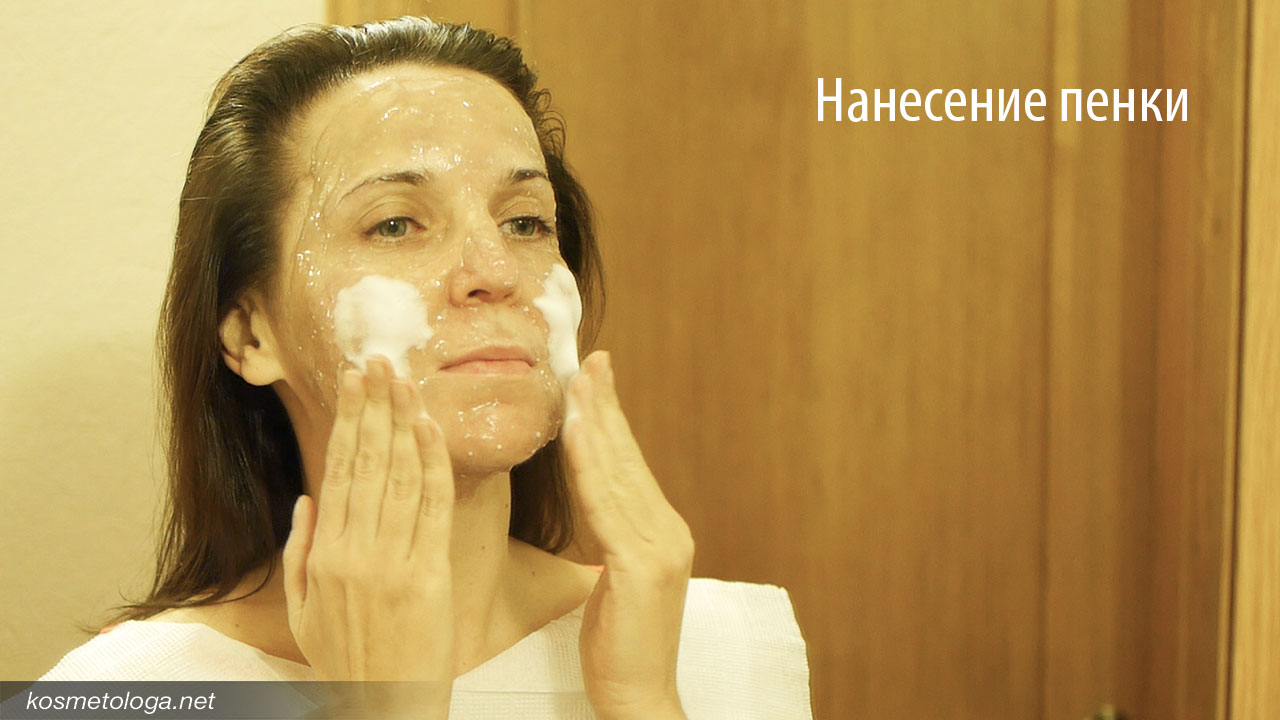 По истечении указанного времени я следую дальнейшим инструкциям и наношу на лицо пенку для удаления маски. Пенка остаётся на лице на 5 минут, после чего я приступаю к удалению маски.