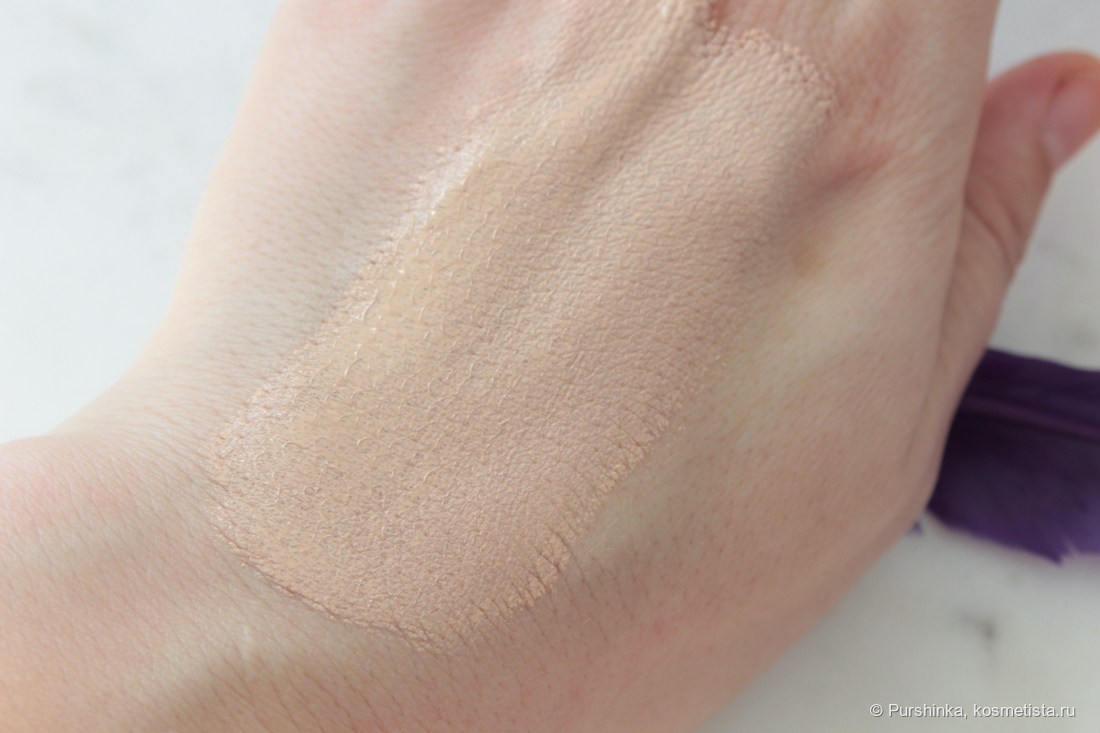 Текстура: легкая и нежная консистенция, тональный крем относится к жидким флюидам. Финиш нельзя строго отнести к матовому или сатиновому, кожа выглядит натурально.