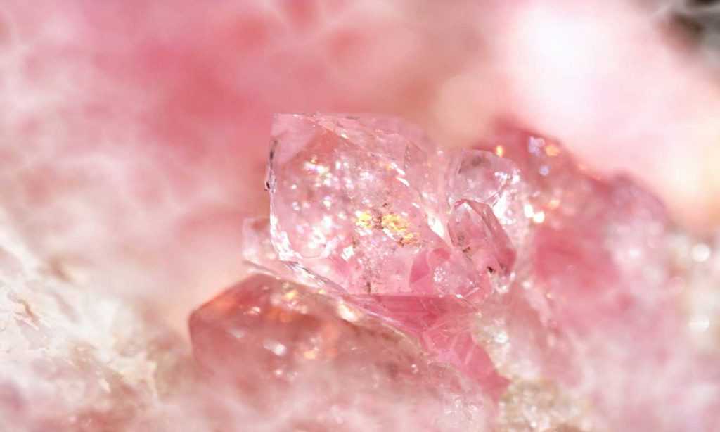 Однажды вырезанный, кристалл розового кварца дает очень гладкую, почти отраженную поверхность
