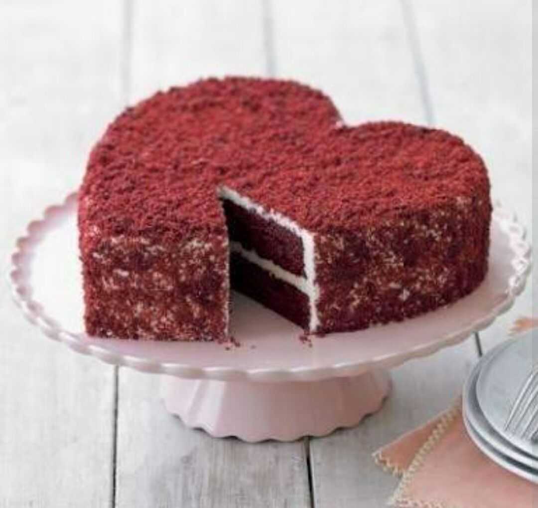 - Полученные коржи разламываются на кусочки и небольшие крошки. Можно порезать на кубики размером 3 на 3 см. Каждый кусочек окунается в крем и выкладывается на тарелку в форме сердца.