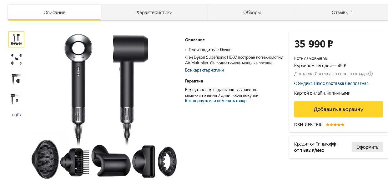 Желанные фены и стайлеры можно приобрести в онлайн-маркетах у неофициальных дистрибьютеров, которые продают их по завышенной стоимости. Например, на сайте Яндекс.Маркет самый низкий ценник — почти 50 тысяч рублей.