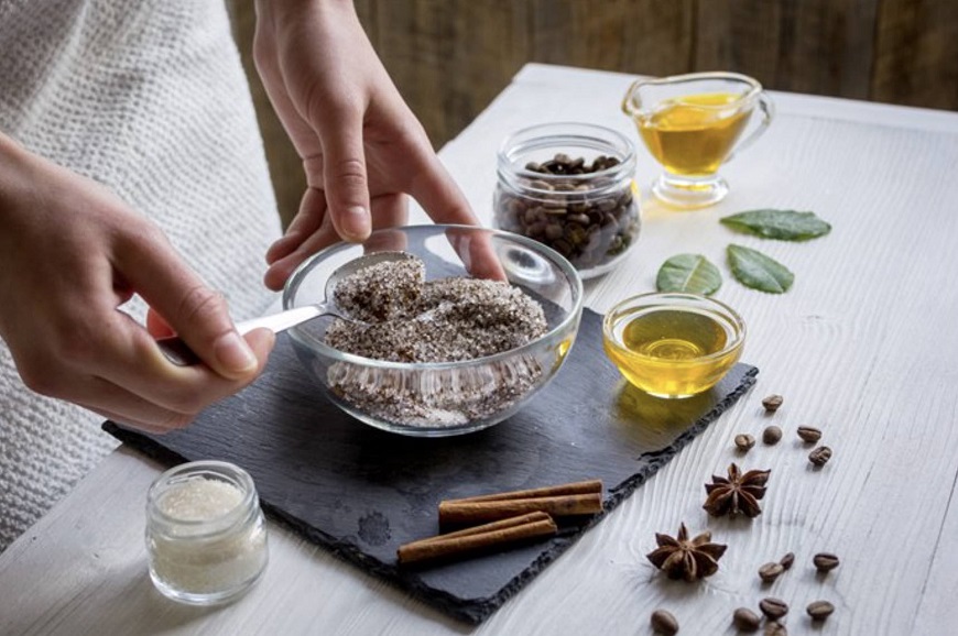 Ингредиенты, используемые для заготовки домашнего очищающего средства, вполне доступны. Пропорции компонентов подбираются в зависимости от количества и консистенции скраба.