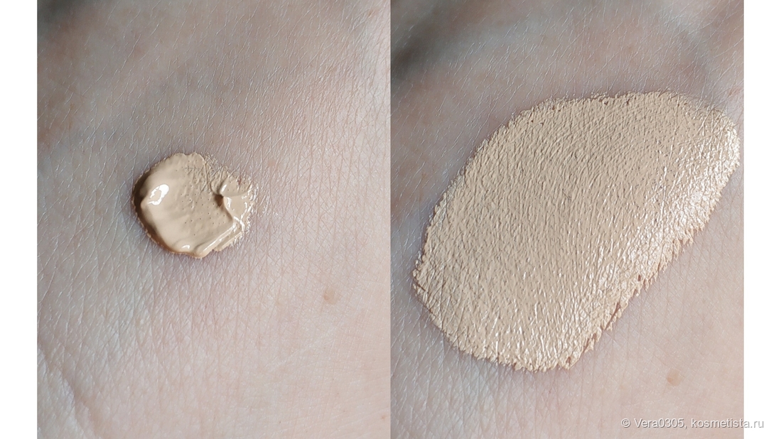 Нанесла 2N1 тонко. В таком слое сам крем не очень заметен на коже, что плюс, но цвет слегка растворился. Правда, в целом оттенок получился вполне здоровый.