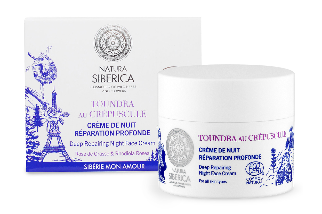 Крем «Закат в Тундре» вошел в линейку под французским названием Siberie Mon Amour, что объясняет наличие на упаковке изображения Эйфелевой башни в компании с матрешкой. Внутри тоже притаилось немного Франции — гидролат розы Граса для тонуса кожи. Он соседствует с суровым сибирским женьшенем — источником питательных компонентов, необходимых для сохранения молодости. Команда Natura Siberica обещает: наутро после использования маски кожа будет наполнена энергией — будто вы всю ночь гуляли по морозной тундре!