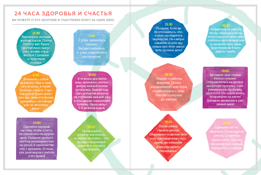 18:30 Уйдите с работы вовремя. После насыщенного дня пора позаботиться о себе. Работа потерпит до завтра!