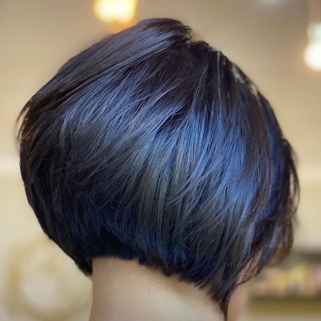 Черноволосые дамы также не должны ограничивать себя в мечтах о проявлении индивидуальности. По мнению стилистов и дизайнеров в моде в 2020 году будет не чисто черный цвет, а с фиолетовым или красным оттенком. Причем, нужно добиться следующего эффекта: на первый взгляд перед окружающими будет девушка/женщина с черными волосами, но стоит ей выйти в лучи естественного или искусственного света, как ее волосы начинают переливаться синими/фиолетовыми/рубиновыми оттенками. Такой эффект может быть достигнут только при использовании качественных профессиональных красок и при привлечении к созданию такого образа опытного мастера.