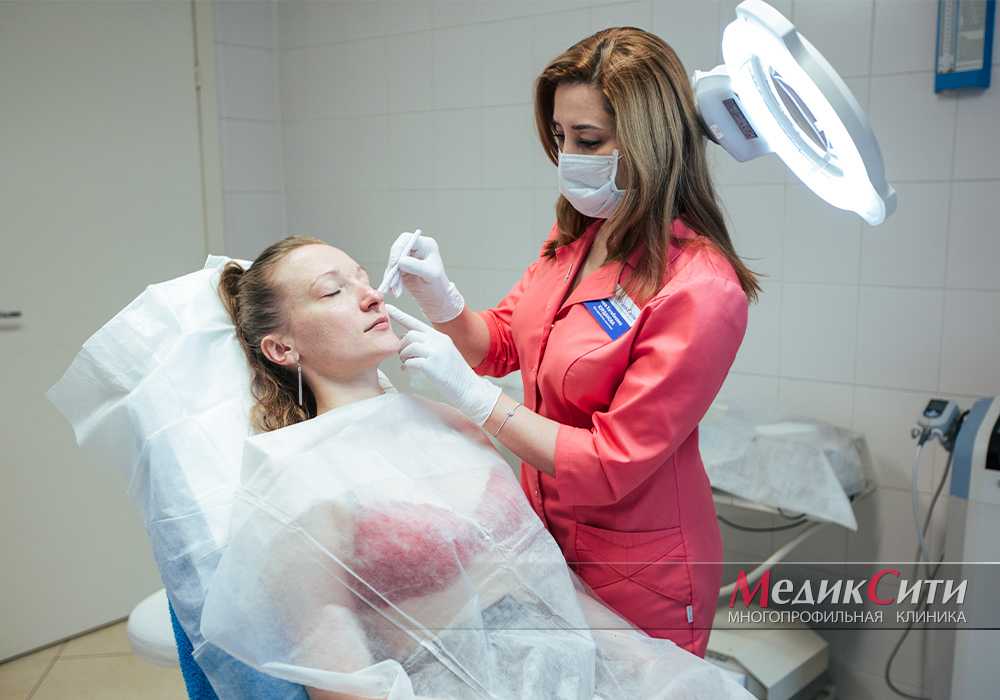 Контурная пластика в МедикСити. Врач-косметолог сначала обозначает проблемные места.