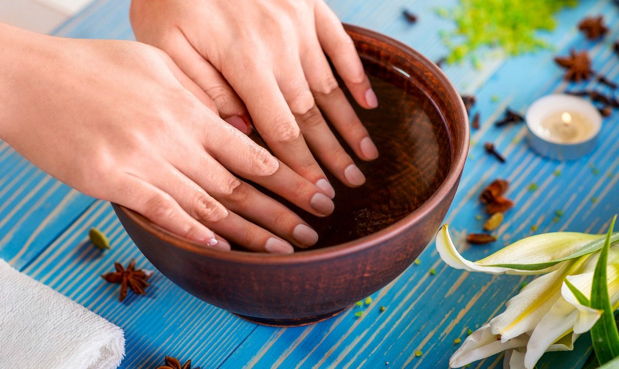Ванночка с добавлением эфирных масел. Понадобится 250 мл тёплой воды, морская соль – 1 ст. л., масло грейпфрута, чайного дерева и кедра – по 1 капле. Все компоненты смешать, держать ногти в полученной жидкости 10-15 минут, после этого высушить их и воспользоваться кремом для увлажнения или питания кожи.