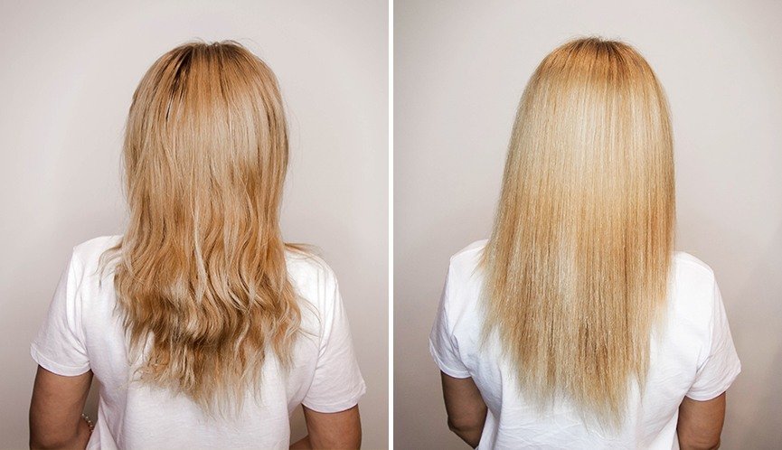 Безопасно выполнить покраску можно спустя 3 недели после посещения салона, так как через это время реконструирующий раствор выполняет основное действие на волосках и в корневой системе.