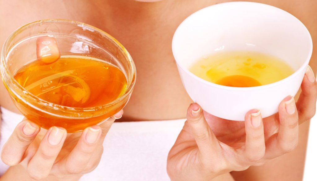 Смешать жидкий мед, оливковое масло и сырое яйцо. Смешать ингредиенты и нагреть на водяной бани до приемлемой температуры.срок применения процедуры – 30 минут.