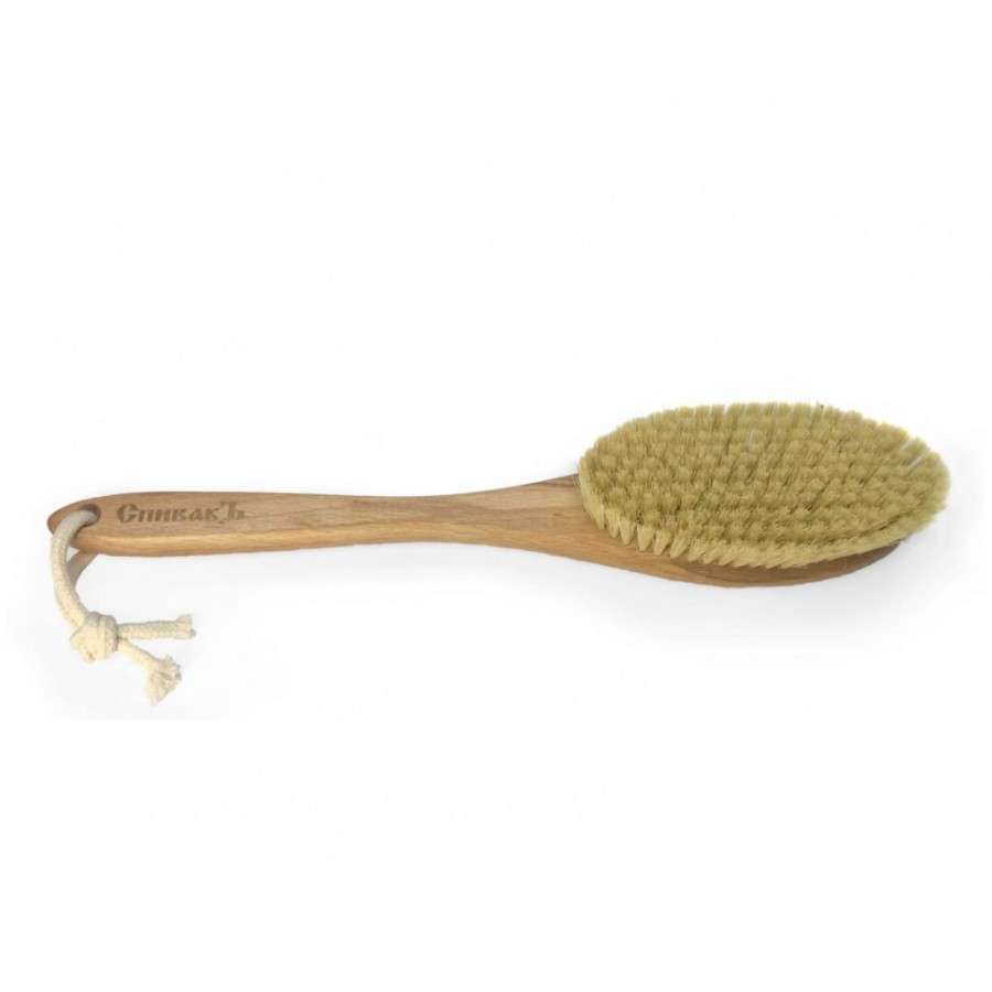 | Бест Транс Сервис(Россия) | Двухсторонняя щётка с длинной ручкой | Корпус — дерево, резина;щетина — синтетика, зубцы — дерево | Щетина мягкая, и растирания могут показаться слабыми | От 360 рублей | Щётка предназначена для сухого массажа. Растирать тело рекомендуется сначала деревянными зубцами, потом щетиной. |