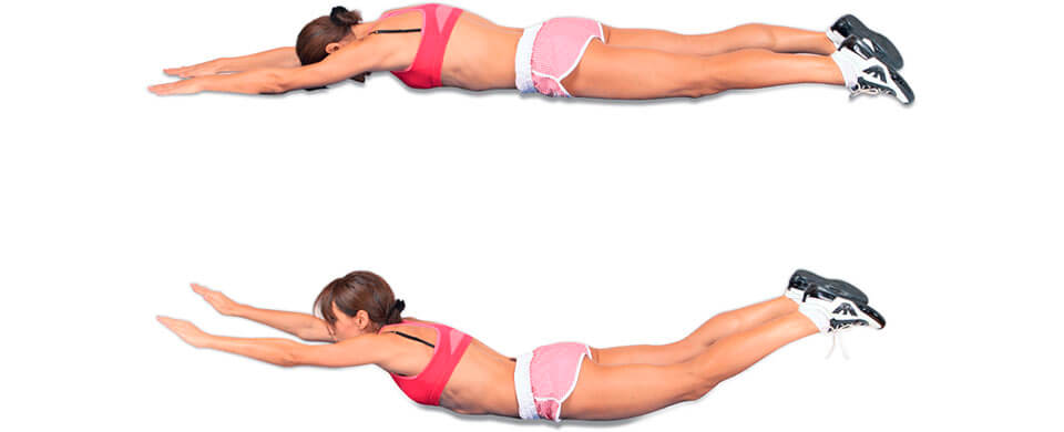 Если дома есть фитбол, упражнения тоже будет легко осуществимы. Даже при патологиях позвоночника доктора разрешают выполнять занятия с большим мячом, который служит амортизатором для позвонков. Фитбол надо положить на пол, лечь на него тазом, спина располагается вверху. Руки выставить вперед, ногами удерживаться на полу. Тело опустить вниз примерно на 50 градусов, сгибая поясницу и распрямив плечи. Повторить упражнения нужное количество раз.