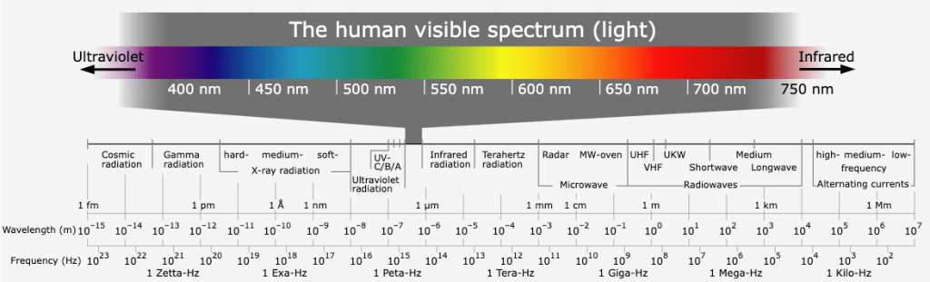 После ультрафиолета начинается видимый свет (от