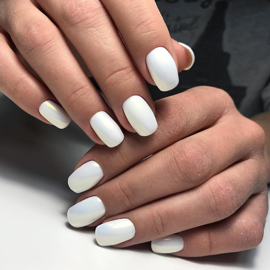 Молочный маникюр на квадратных ногтях