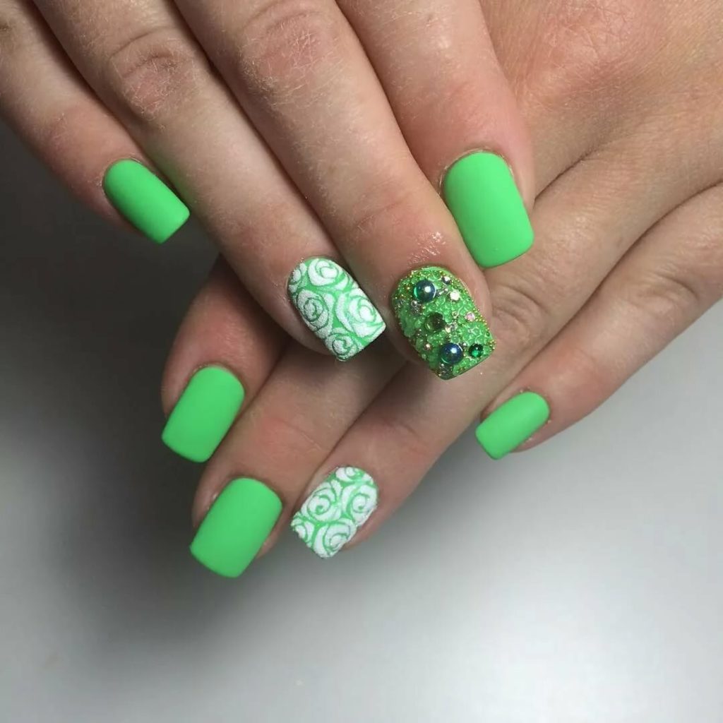 Интересно смотрится размещение декора на одном пальце, полностью покрытие или в качестве рисунка.