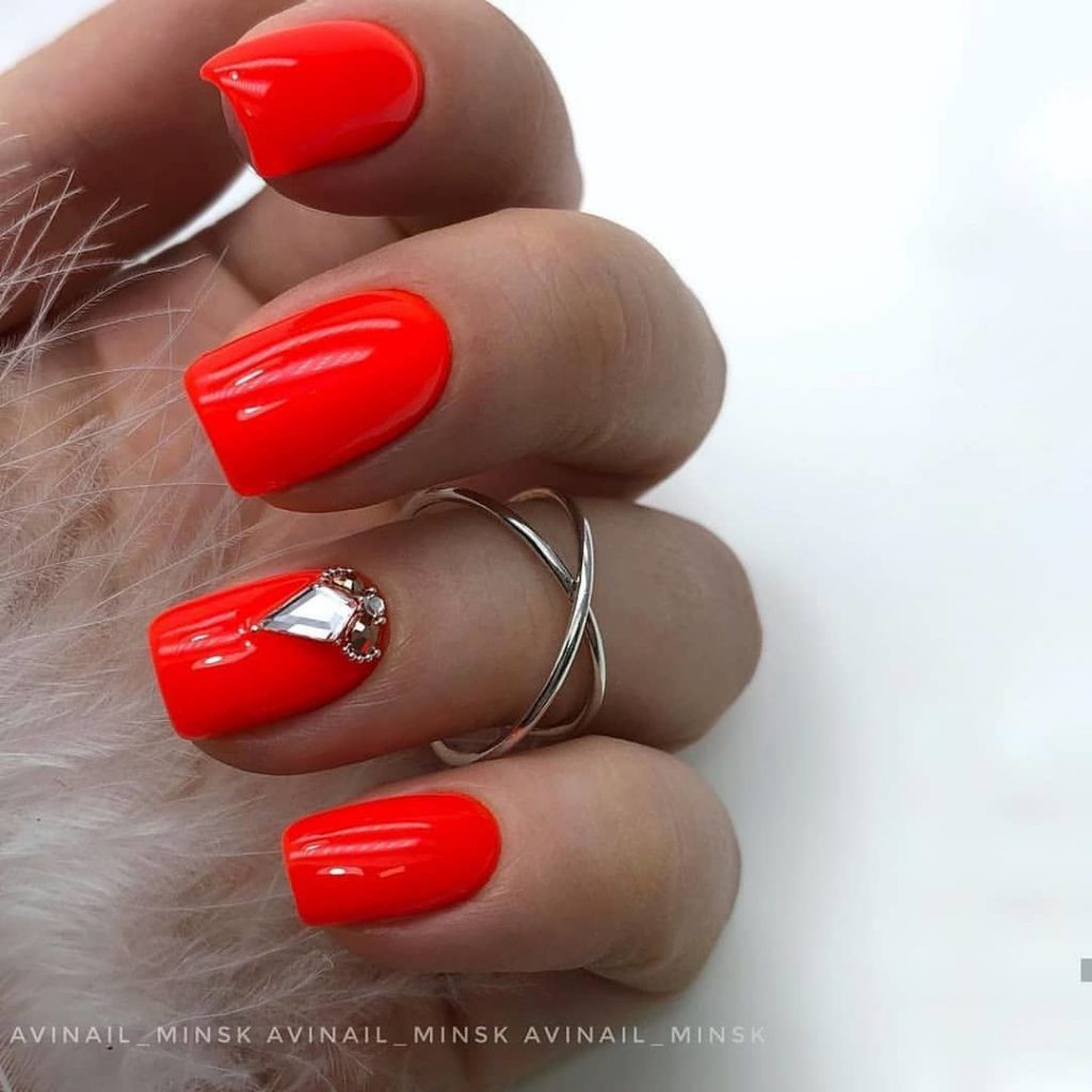 - Красный маникюр на короткие ногти — идея 5
