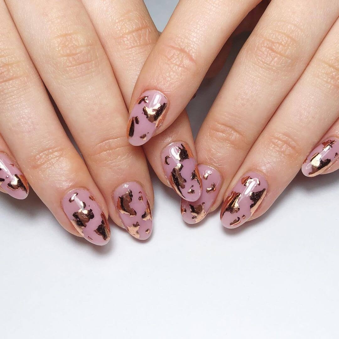 Третий тренд 2020 года — использование страз для инкрустации ногтей. Создать дизайн со стразами можно на основе гель-лака любого цвета. В коричневом маникюре лучше использовать технику золотого литья, золотые бульонки и микробисер. Подложку для страз лучше тоже выполнять из золота, так маникюр будет выглядеть более гармоничным.