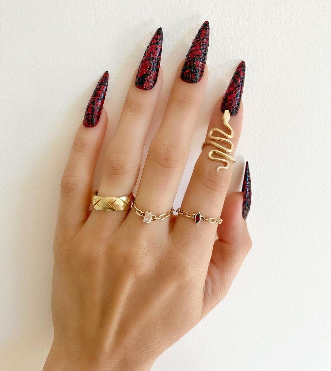 Острые ногти. Этот вариант более экстремальный, но тоже имеет место быть. Подойдет скорее на выход, так как не всегда будет удобен на каждый день.