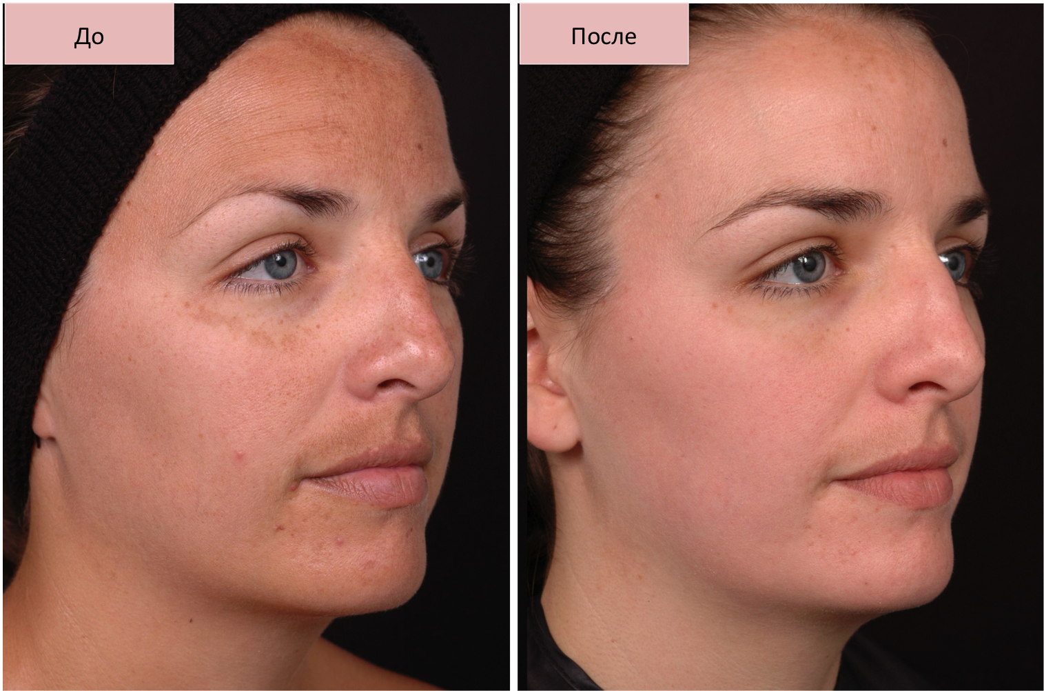 процедура «IPL-фотолечение Quantum». Пигментированные участки удаляются при помощи широкополосного импульсного света, который воздействует на пигмент и разрушает его;