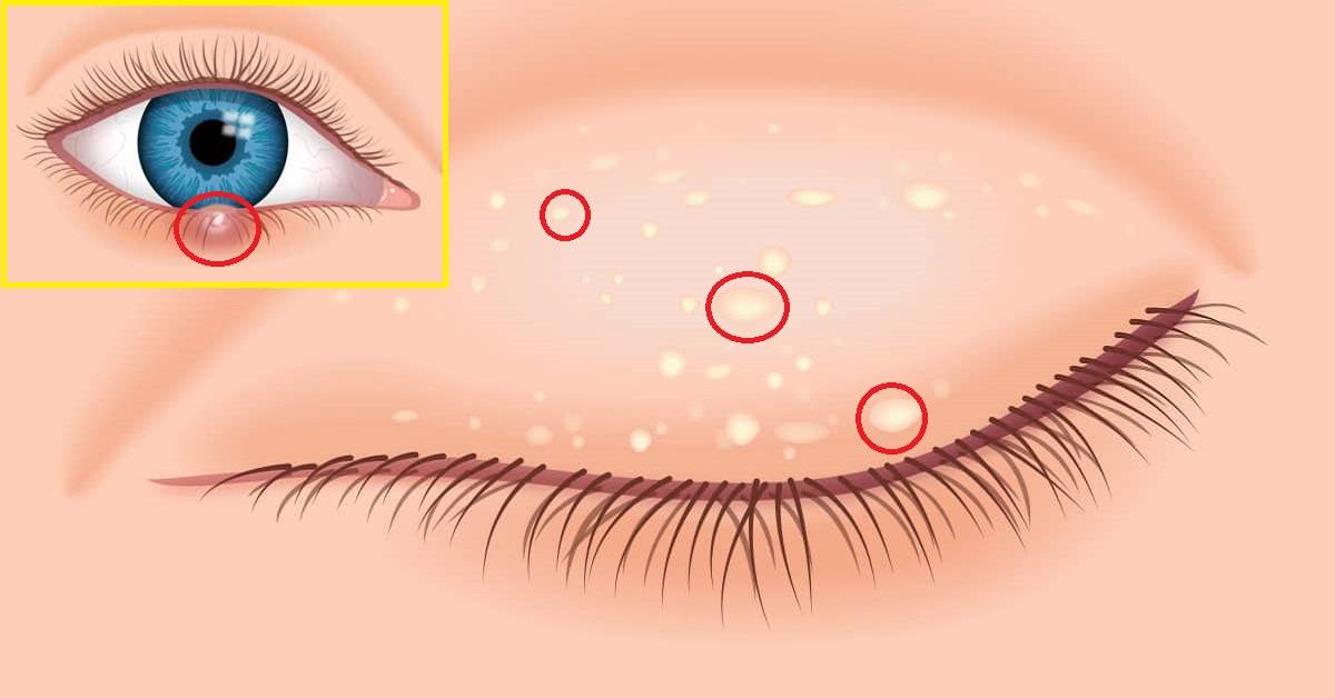 Нижние белые пупырышки под глазами, милиумы в уголках нижней части глаз и на веках важно дифференцировать с ксантелазмой