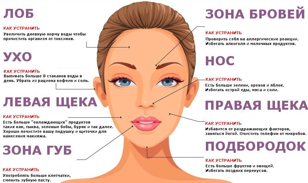 - прыщи имеют нетипичные и типичные места сосредоточения;