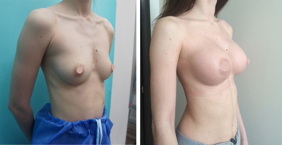И здесь очень важно не путать эстетическую и реконструктивную пластическую хирургию. В случае эстетической операции с имплантами все значительно проще: две изначально одинаковые здоровые груди и два импланта, результат смотрится симметрично и классно