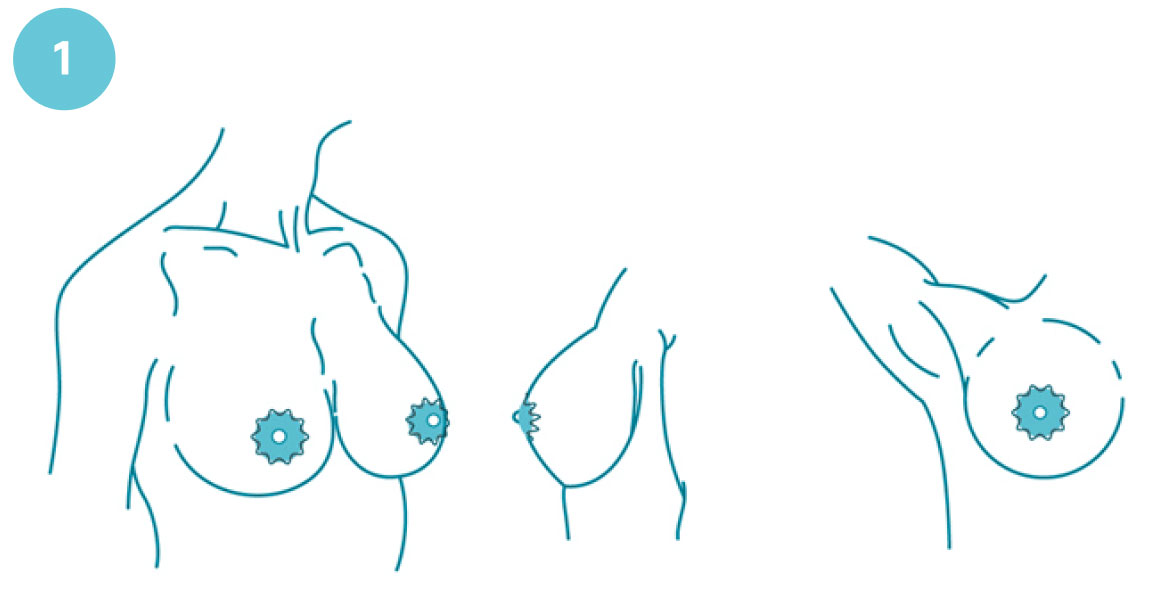 Для выполнения этой операции требуется 2 разреза: один – вокруг соска и второй – вертикально вниз. В ходе операции формируется эстетичный контур груди, сосок аккуратно перераспределяется в новое, высокое положение и корректируется.