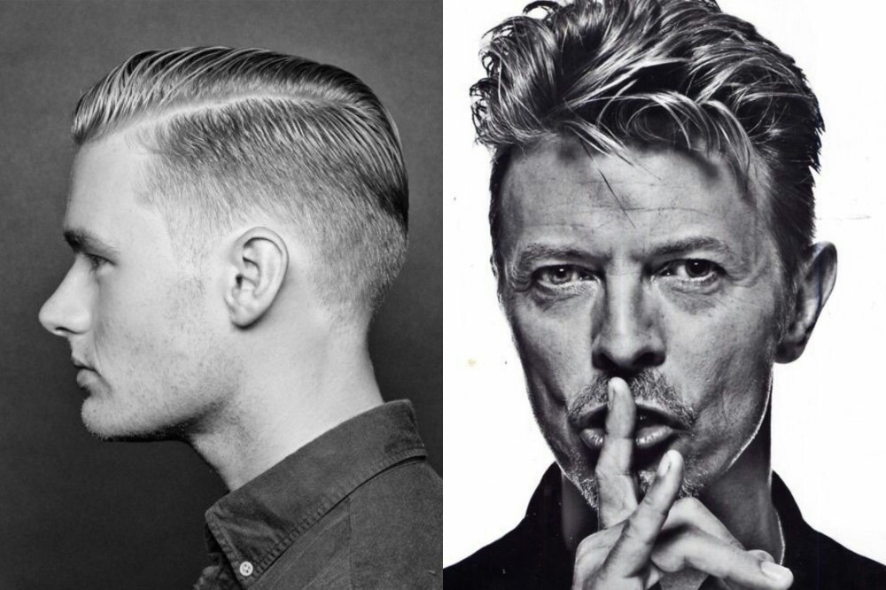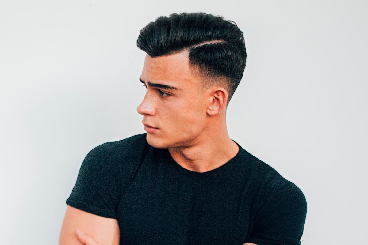 Мужская прическа волосы зачесанные назад по бокам выбрито (Помпадур).