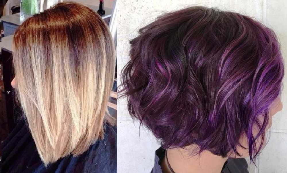 В случае окрашивания на короткую длину, но не ниже середины шеи, технология освежает прическу. Вносится свежесть и выполняется следующим образом — волосы разделяют на зоны, начесывают у корней и поднимают вверх. Краску наносят на поверхность, кроме прикорневой зоны. Для стрижки каре, следует аккуратно подходить к подбору цвета, иначе вместо легкости и вытянутости, получим «home made». Результат зависит от качества исполнения.