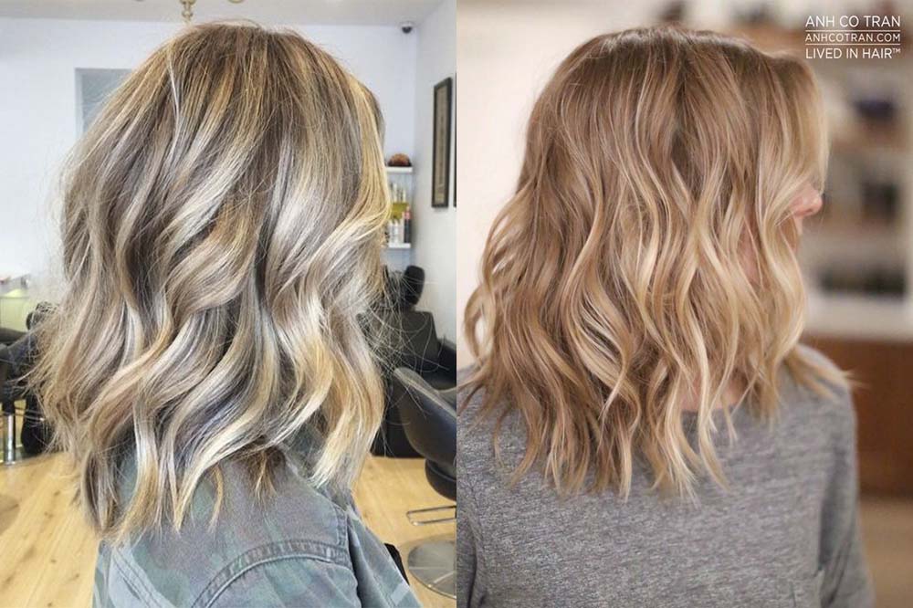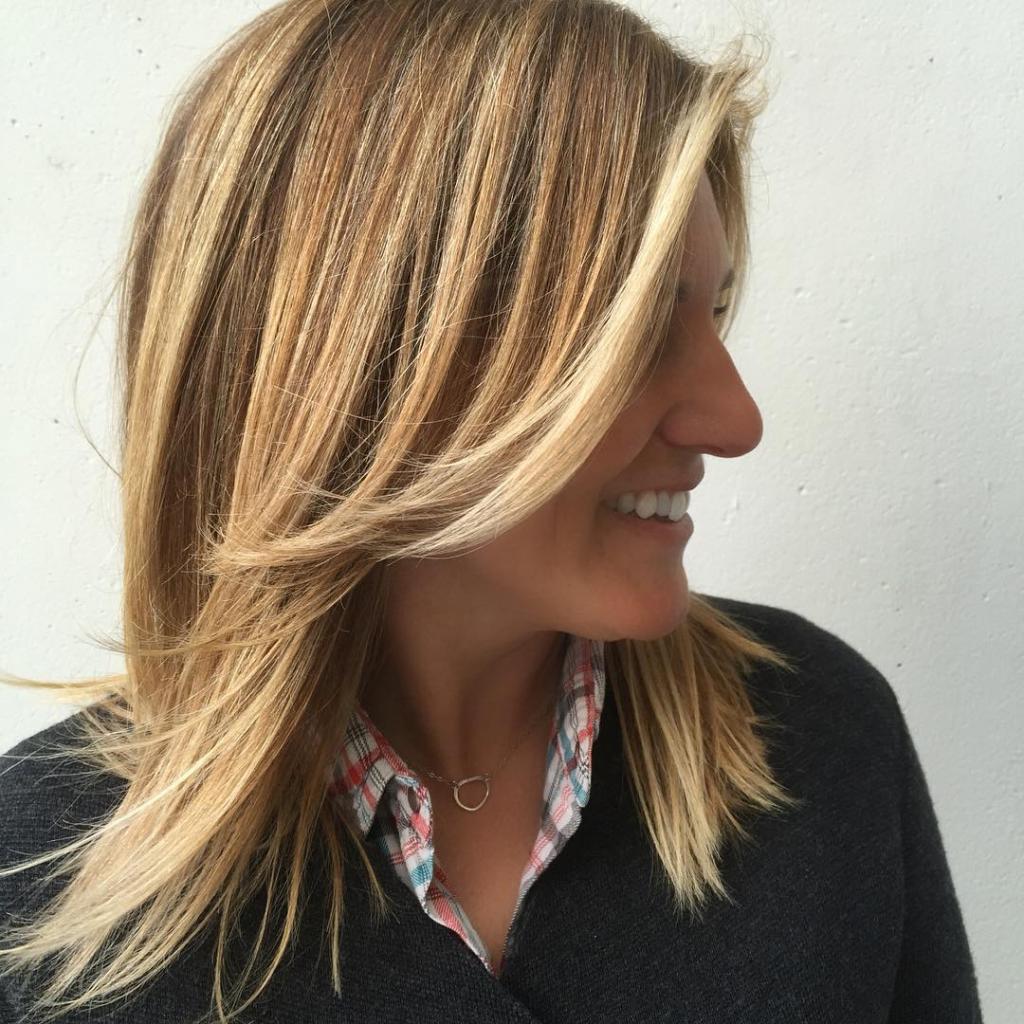 Для волос средней длины уже можно пробовать наносить истинный бронд, но будет использоваться намного меньше оттенков, и переходы будут не таким размытым. Для такой длины лучше подходит супернатуральное брондирование, когда разница между прядками не превышает одного полутона.