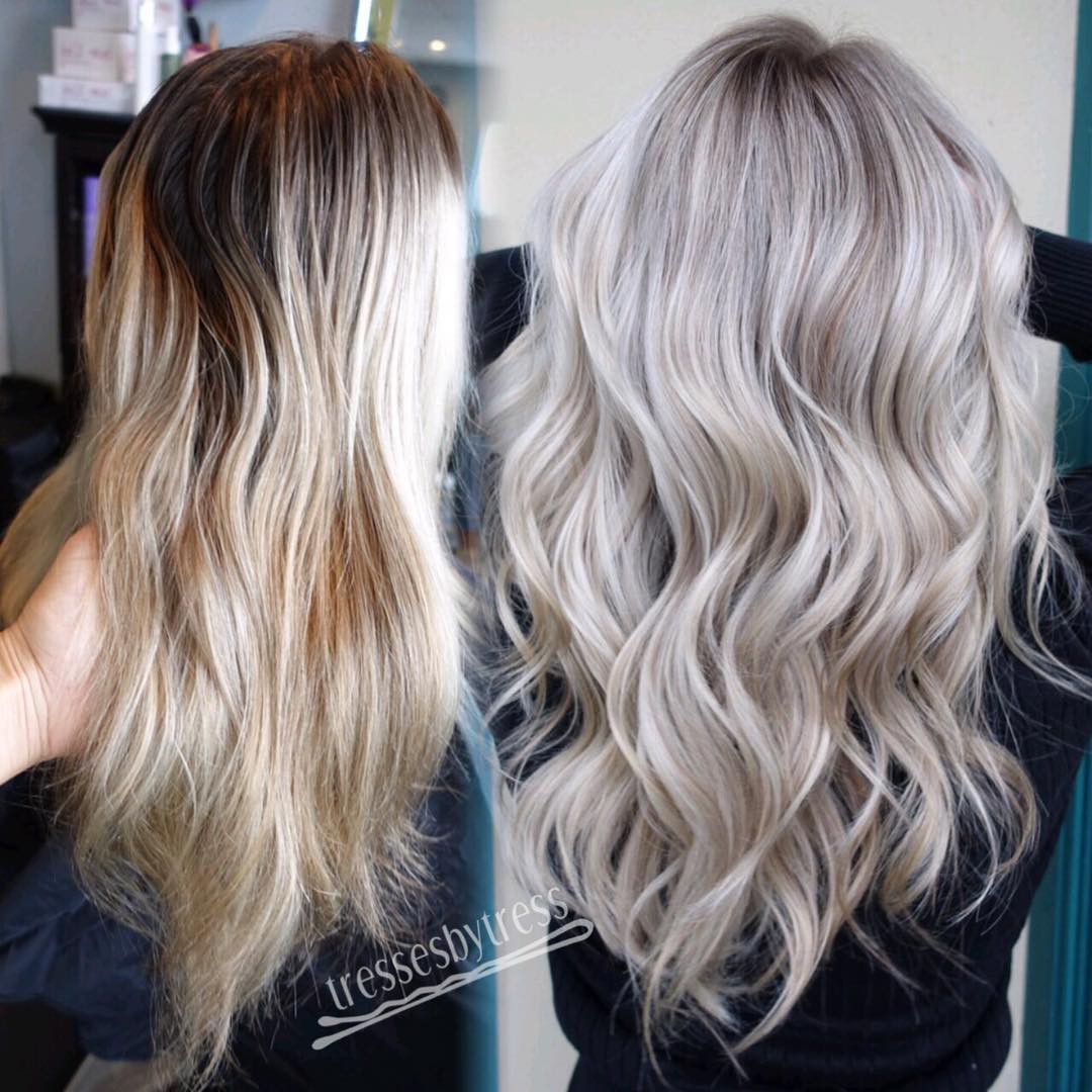- Ультрасветлый пепельный. Омбре от светлого к очень светлому, холодному пепельному – это очень актуальный цвет в этом сезоне.Светлый пепел