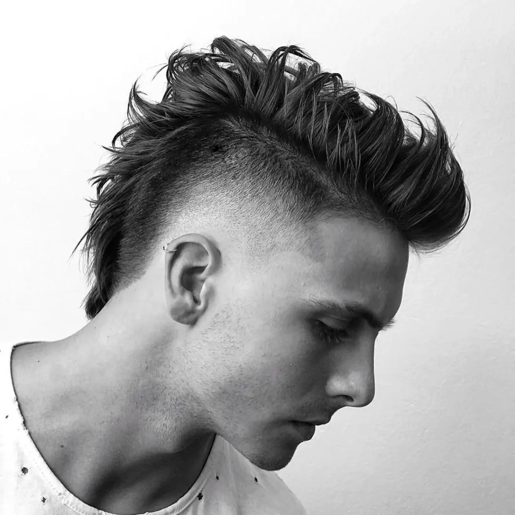 ирокез: узкий вертикальный гребень, торчащий на макушке, и выбритые или короткие волосы по бокам.