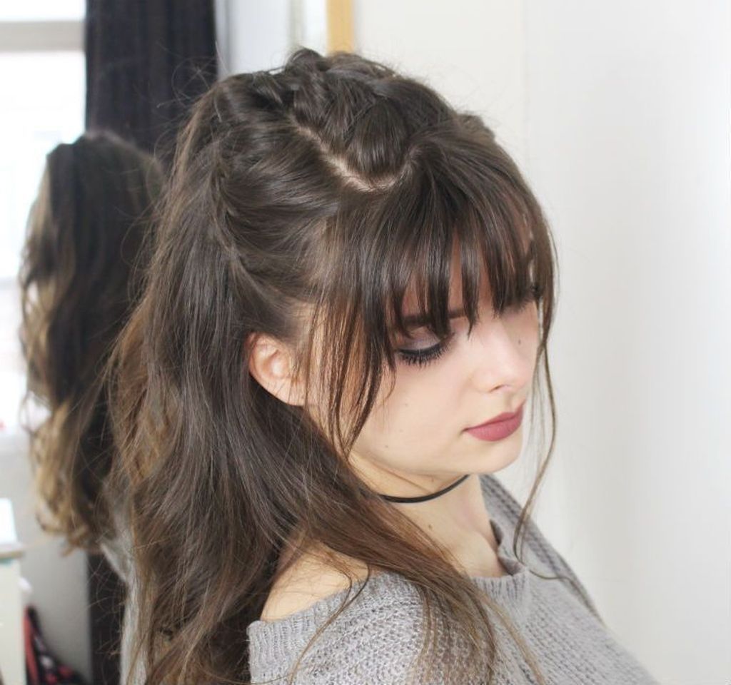 Отросшая челка. Вариант укладки для тех, кто пытается избавиться от своей короткой челки — завивайте ее на кончиках, как Джессика Альба, и носите разделенной на две части, чтобы лоб оставался открытым.