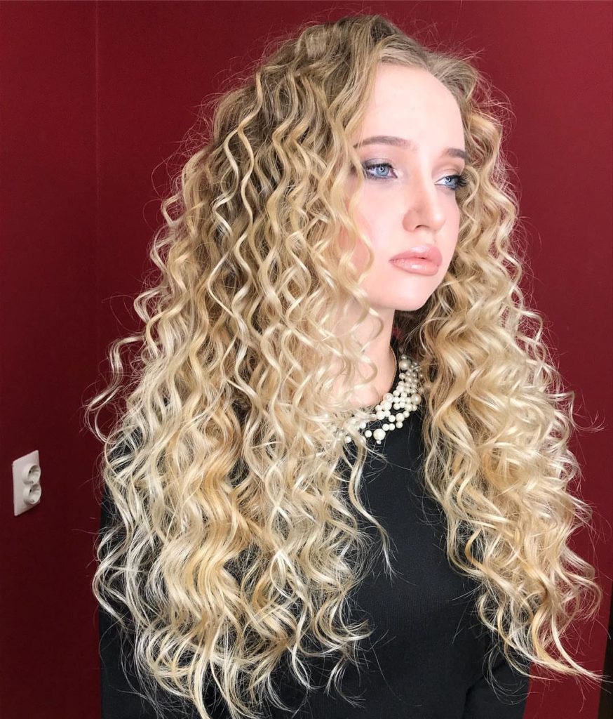 - Волнистые или вьющиеся натуральные волосы. Такой тип проще всего поддается укладке афро кудрей и с большей степенью вероятности этот эффект продержится до следующего утра. Кудри бывают очень разными, поэтому обладательницы вьющихся волос зачастую удивляются, как сильно афро кудри меняют их образ. Такое перевоплощение может быть не менее заметным, чем у женщин с прямыми волосами от природы.