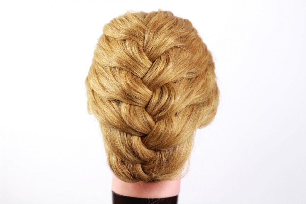 - Подогните кончик косы и заправите внутрь на затылке, закрепив шпильками и невидимками.