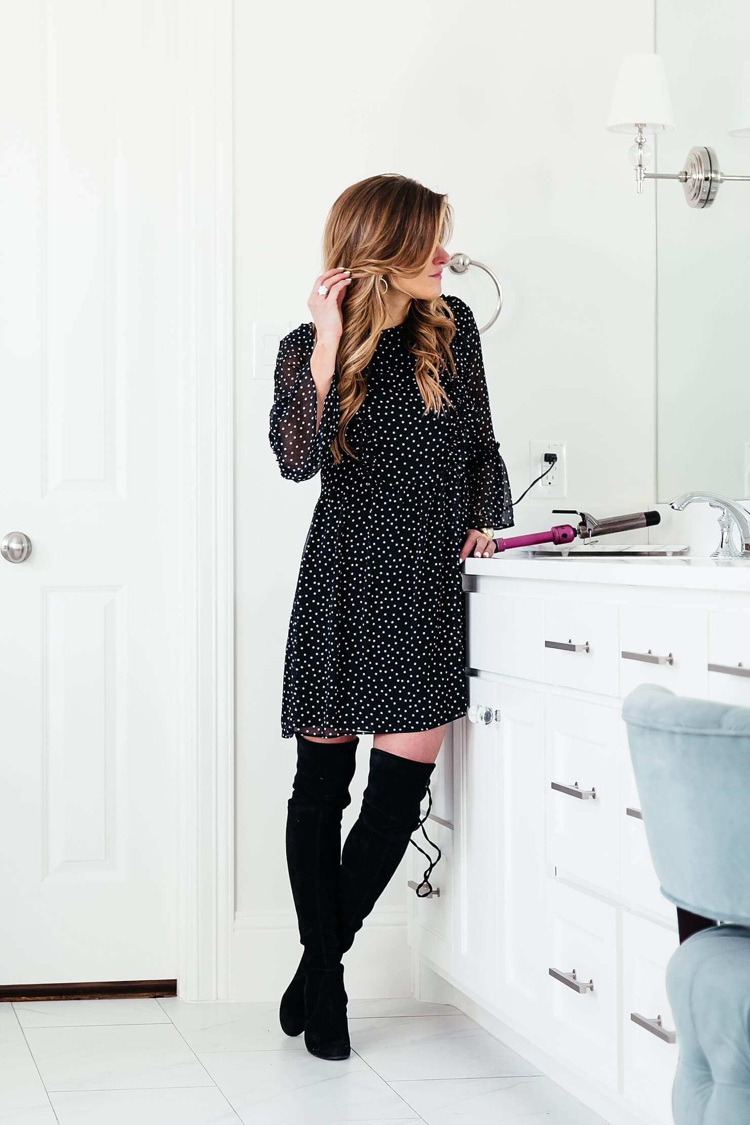 - Зафиксировать готовый результат струей прохладного воздуха, смоделировать прическу и сбрызнуть локоны небольшим количеством лака средней фиксации.