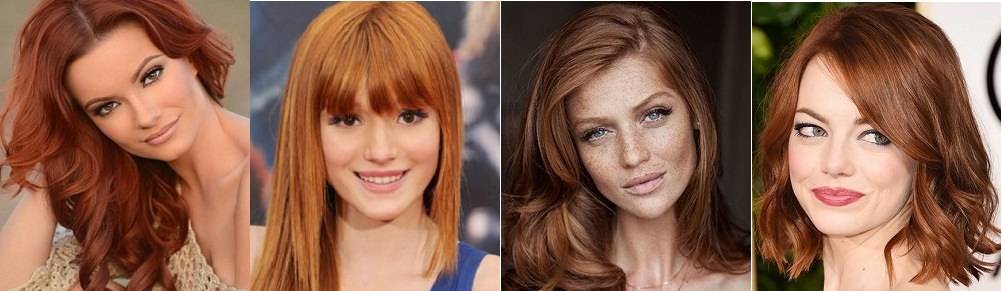 Женщины с зелеными глазами и тусклой, бледной кожей имеют привлекательный красноватый оттенок. Бронзовый загар в сочетании с голубыми глазами делает обладательницу рыжих локонов особенно красивой. Светлые оттенки не стоит выбирать девушкам с веснушками и молочно-белым лицом — такой оттенок только усилит контраст, что негативно скажется на внешности. Этот цвет подходит женщинам со слегка смуглым цветом лица.