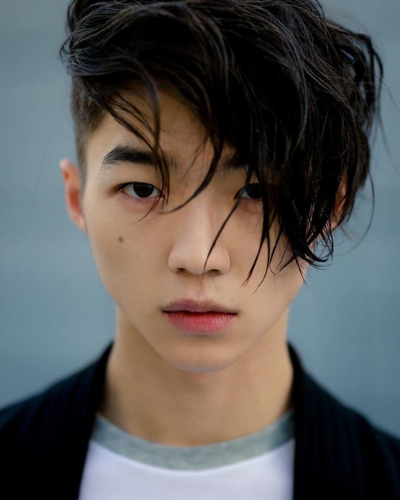 Это самый доступный вариант для тех европейских мужчин, которые хотят постричься в корейском стиле, но не могут найти подходящую из-за вьющихся волос. Мастер должен расположить рваные пряди на голове клиента в хаотичном порядке. Но в целом у вас должен получиться образ, в котором такой бардак будет продуманным и удобным для укладки.